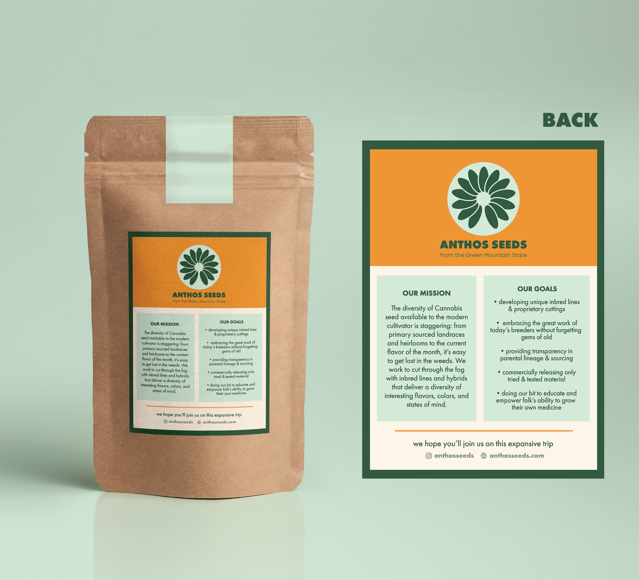 Anthos Seeds is inspired by the slow, intentional process of growing. For this branding redesign, I focused on creating a visual identity that feels organic, warm, and trustworthy—drawing from Vermont’s natural textures, muted color palettes, and the simplicity of seed-to-soil storytelling.