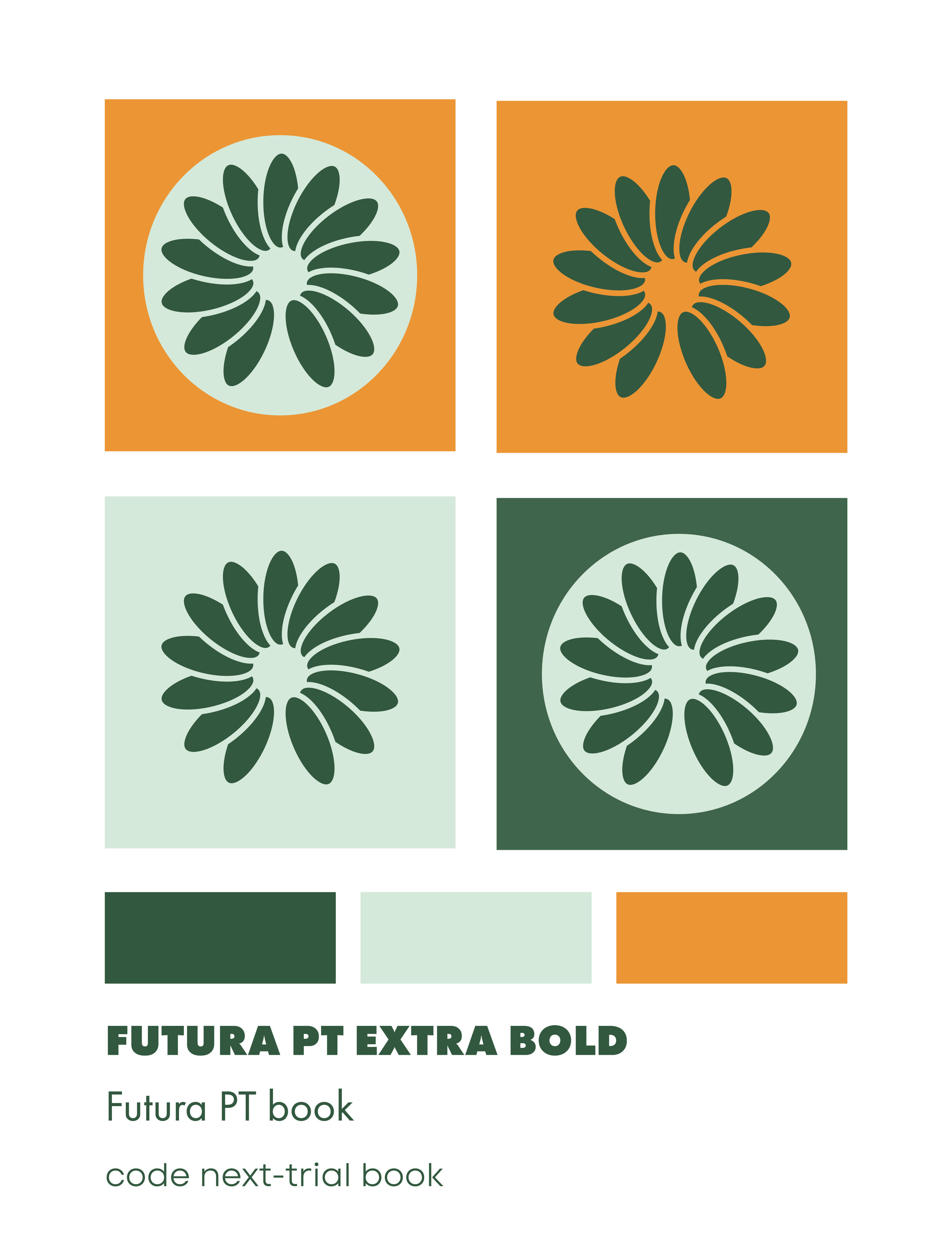 The color palette draws from natural earth tones, combining rich orange and deep green with a softer light green to evoke warmth, vitality, and trust. A modern sans-serif typeface was chosen to balance the organic elements of the brand, bringing clarity and a clean, modern sensibility while maintaining a grounded, approachable presence.
